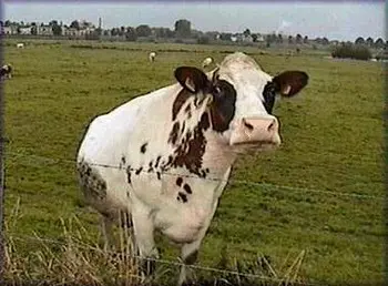 Eén van de daders van het bevlekte weiland....Wethouder F. heeft nog wel wat reserves bij het plan. Zo graasden er sinds 24 september 40 koeien bij het Jurgensmuurtje. Er vanuit gaande dat een koe per dag 15 kilo poep loost op zijn ondergrond, betekent dit dat er inmiddels 22.800 kilo koeiepoep in het weiland ligt. Geheit dat er dames op naaldhakjes komen, de noodlottige afloop laat zich wel raden, aldus een ietwat verontruste wethouder F.