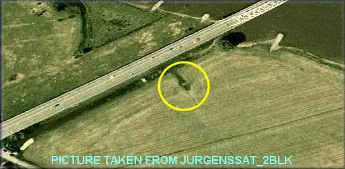 Wat zag het college op de foto? Het Jurgensmuurtje en toen ze heeeeeel goed keken een klein groen kruisje (net boven de m) waar de Muurtjeswachter op wacht lag voor de CJJ'ers.