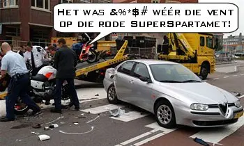 Een verslaggever van de Jurgenslander Gazet weet te melden dat het om een roodkleurig soort Super Spartamet gaat, waarmee Wethouder F. zelfs al een illegale straatrace op zijn naam schijnt te hebben geschreven.